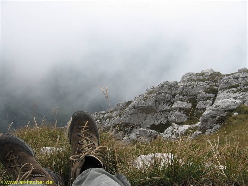 dichten Wolken um das Massiv begleitet, so daß wir Null Aussicht hatten.